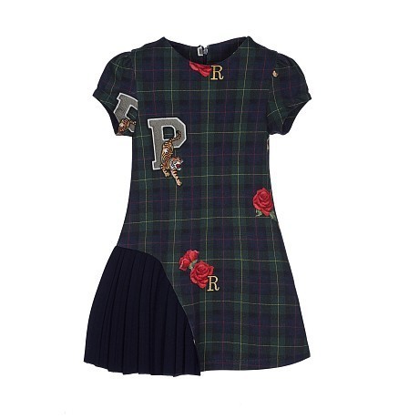- 🎨 Дизайн: тигры, розы, зеленый клетчатый фон, плиссированный подол