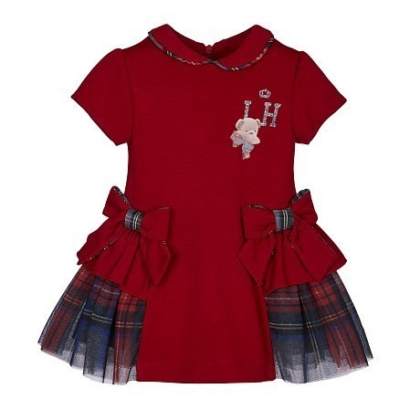 Красное платье для девочек с принтом медведя и бантом