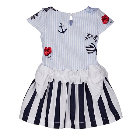 Платье Lapin House – это идеальный выбор для девочек! Изготовленное из 78% хлопка, 21% тактеля и 1% лайкры, оно украшено очаровательными принтами якоря и цветов. Нежная белая основа с синими полосами и яркими акцентами создает морской стиль и легкость. На фотографиях видны аккуратные белые банты по краю юбки и цветы на юбке, а также якорь на лифе. Качество от бренда из Греции и внимание к деталям делают эту модель отличным выбором для вашего ребенка!