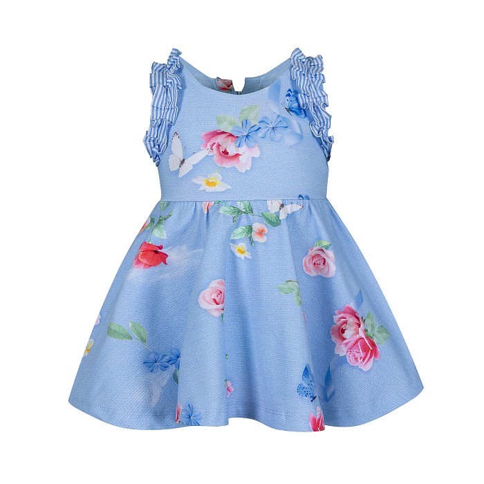 Голубое платье для девочек с цветочным принтом
