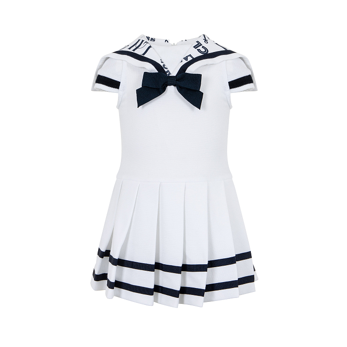 Платье для девочек Lapin House – это идеальный выбор для вашего ребенка! Изготовленное из 100% хлопка, оно украшено красивыми принтами и бантом на горловине. Мягкая белая ткань с черными полосами и принтами создает стильный и элегантный образ. На фотографиях видна аккуратная черная окантовка по краю и мягкая текстура ткани. Качество от бренда из Греции и внимание к деталям делают эту одежду отличным выбором для вашего ребенка!