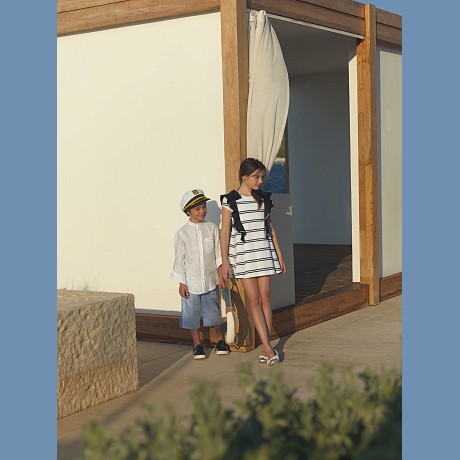 Платье Lapin House – это идеальный выбор для маленьких модниц! Изготовленное из 96% хлопка и 4% лайкры, оно оформлено черными оборками и белыми полосами. Нежная белая основа с черными полосами и оборками создает элегантный и современный образ. На фотографиях видны аккуратные черные оборки на плечах и мягкая текстура ткани. Качество от бренда из Греции и внимание к деталям делают эту одежду отличным выбором для вашего ребенка!