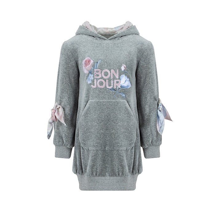 Платье тр. серое Lapin House с принтом Bonjour для девочек 10-14 лет