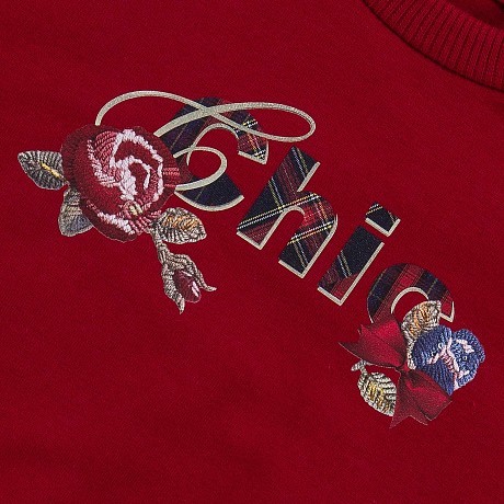 - 🎨 Дизайн: цветы, надпись "Chic", клетчатая юбка, бантики на рукавах
