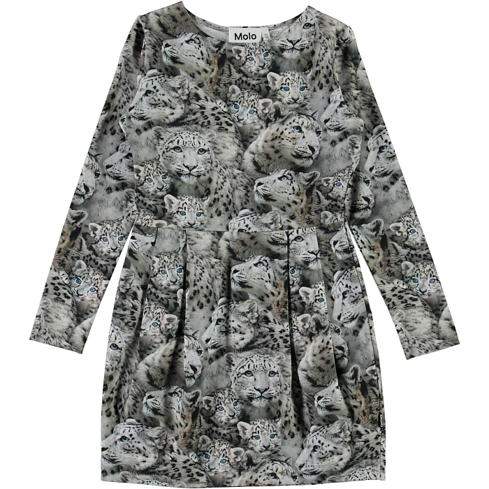 Платье тр. для девочки Molo – это идеальный выбор для маленьких модниц! Изготовленное из 95% органического хлопка и 5% эластана, оно украшено очаровательным принтом снежных леопардов. Нежная ткань с ярким принтом создает неповторимый образ, который будет радовать глаз и сердце. На фотографии видна аккуратная детализация принта снежных леопардов, мягкая текстура ткани и удобная посадка. Качество от бренда из Дании и внимание к деталям делают эту модель отличным выбором для вашего ребенка!