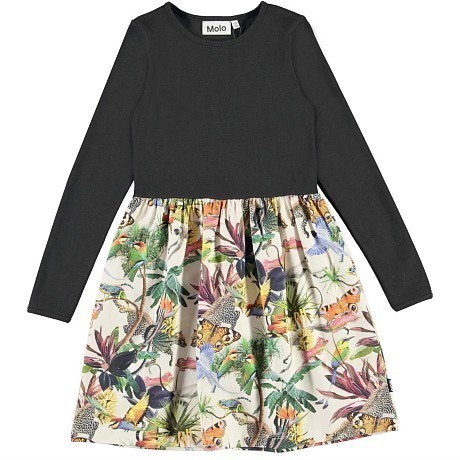 Платье тр. для девочки Molo – это идеальный выбор для теплых дней! Изготовленное из 95% хлопка органического и 5% эластана, оно украшено ярким тропическим принтом с разноцветными птицами, леопардами и тропическими растениями на белом фоне. Нежная ткань с эластичной резинкой по низу подчеркивает фигуру и обеспечивает комфорт. Качество от бренда из Дании делает эту модель отличным выбором для вашего девочки!