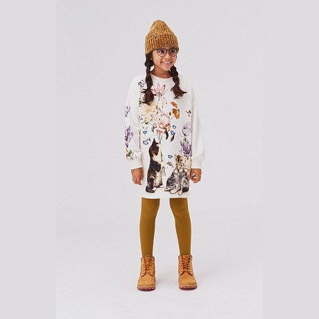 Платье тр. для девочки Molo – это идеальный выбор для маленьких модниц! Изготовленное из 100% органического хлопка, оно украшено очаровательным цветочным принтом и изображением кошек. Нежная белая основа с яркими цветами и милыми кошками создает нежное и в то же время игривое настроение. На фотографиях видны аккуратные цветы и кошки на рукавах, а также мягкая текстура ткани. Качество от бренда из Дании и внимание к деталям делают эту модель отличным выбором для вашего ребенка!