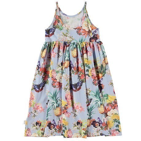 Платье тропическое для девочки Molo – это идеальный выбор для теплых дней! Изготовленное из 95% органического хлопка и 5% эластана, оно украшено ярким тропическим принтом с фруктами, цветами и бабочками на светло-голубом фоне. Нежная ткань с мягкими складками создает легкость и комфорт. На фотографии видны аккуратные бретели, мягкая текстура ткани и яркие детали принта. Качество от бренда из Дании делает это платье отличным выбором для вашего ребенка!