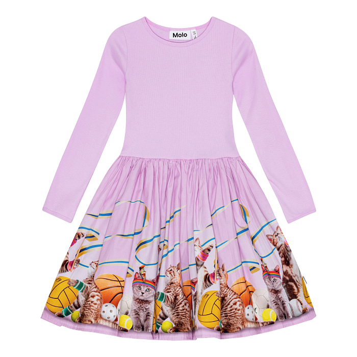 Платье тр. для девочки Molo – это идеальный выбор для маленьких модниц! Изготовленное из 100% натурального хлопка с добавлением эластана, оно украшено очаровательными кошками и разноцветными мячами на розовом фоне. Нежная розовая основа с яркими кошками и мячами создает игривое и в то же время уютное настроение. На фотографиях видна аккуратная розовая окантовка по краю и мягкая текстура ткани. Качество от бренда из Дании и внимание к деталям делают эту модель отличным выбором для вашего ребенка!