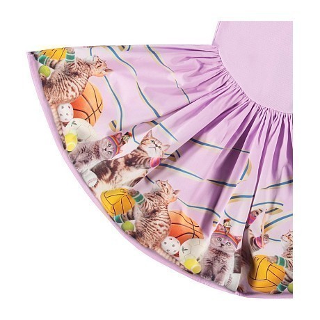 Розовое платье тр. для девочки с принтом кошек и мячей