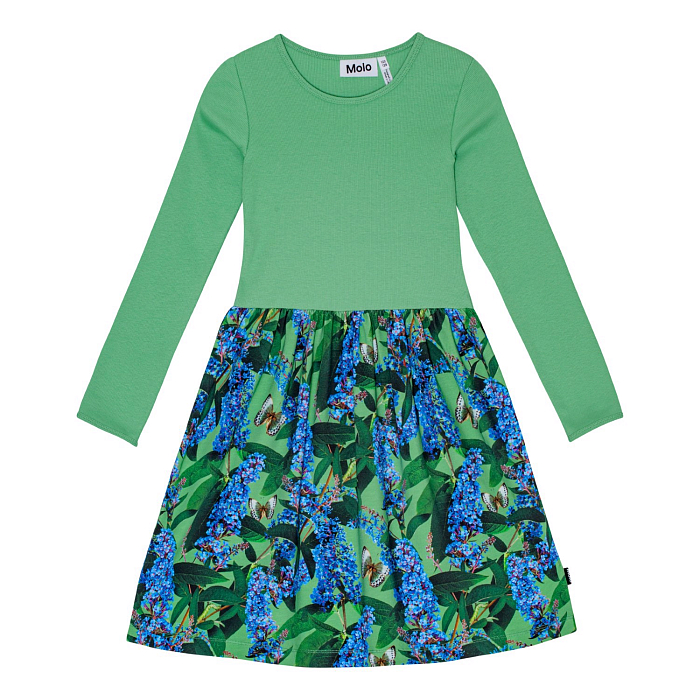 Платье тр. для девочки Molo – это идеальный выбор для маленьких модниц! Изготовленное из 95% хлопка и 5% эластана, оно украшено очаровательным цветочным принтом с бабочками на зеленом фоне. Нежная ткань с яркими цветами и бабочками создает легкое и в то же время уютное настроение. На фотографиях видна аккуратная зеленая окантовка по краю и мягкое платье с длинными рукавами. Качество от бренда из Дании и внимание к деталям делают эту модель отличным выбором для вашего ребенка!
