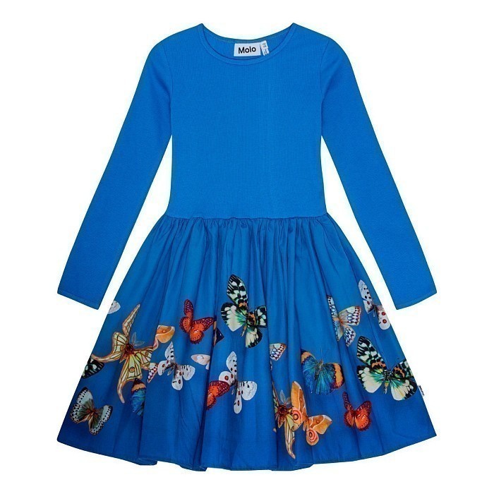 Платье тр. для девочки Molo – это идеальный выбор для маленьких модниц! Изготовленное из 100% хлопка, оно украшено очаровательными бабочками разноцветных оттенков на ярко-синем фоне. Нежная ткань и удобная посадка создают комфорт и легкость. На фотографиях видны яркие бабочки с разнообразными узорами и контрастные линии, которые придают платью яркость и жизнерадостность. Качество от датского бренда Molo и внимание к деталям делают это платье отличным выбором для вашего ребенка!