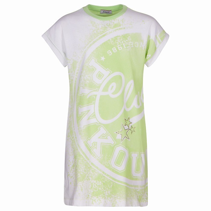 Платье тр. для девочки Pinko Up – это идеальный выбор для вашего ребенка! Изготовленное из 100% хлопка, оно украшено ярким принтом с надписью "Pinko Up" и звездами. Нежная белая основа с зеленым принтом создает стильный и модный образ. На фотографиях видна аккуратная зеленая окантовка по краю и мягкая текстура ткани. Качество от бренда из Италии и внимание к деталям делают эту модель отличным выбором для вашего малыша!