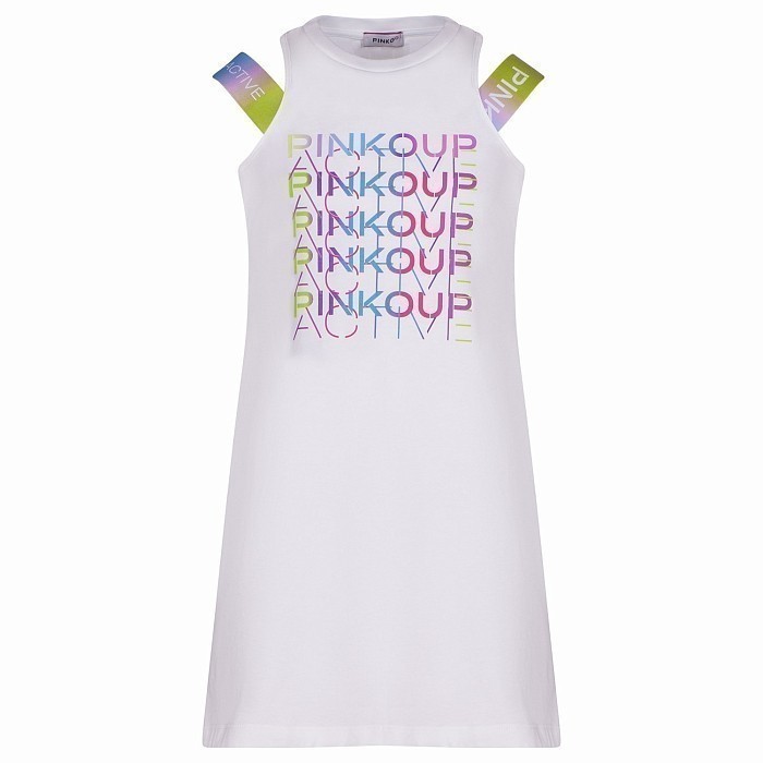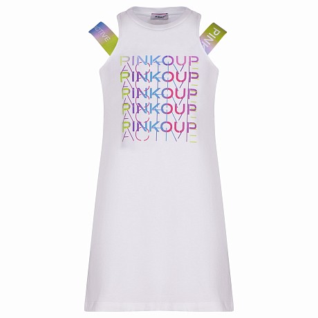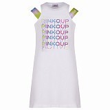 Платье для девочек Pinko Up – это идеальный выбор для стильных и активных малышек! Изготовленное из 100% хлопка, оно украшено ярким принтом Pinkoup, состоящим из разноцветных букв и линий на белом фоне. Платье с открытыми плечами и удобной посадкой идеально подойдет для детей в возрасте от 3 до 10 лет. На фотографии видна аккуратная отделка плечевого шва и мягкая текстура ткани. Качество от итальянского бренда и внимание к деталям делают эту модель отличным выбором для вашего ребенка!
