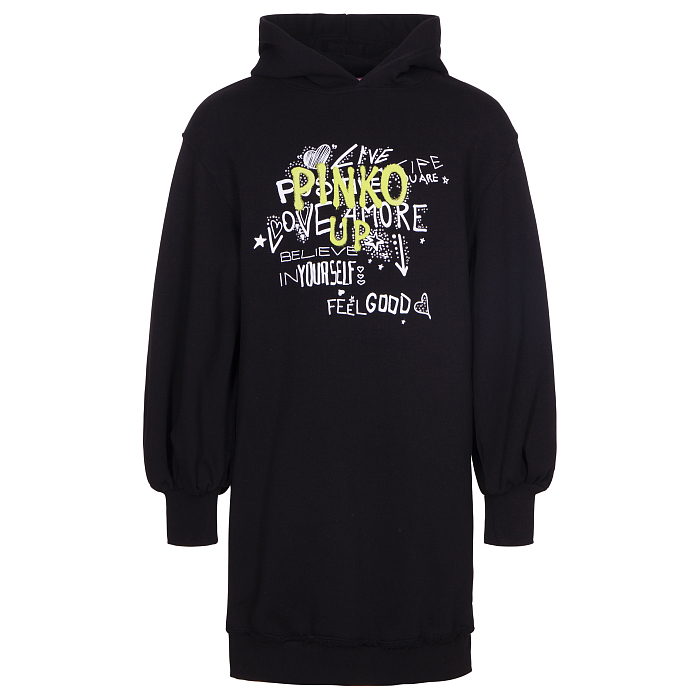 Платье тр. для девочки Pinko Up – это идеальный выбор для стильных и комфортных образов! Изготовленное из 100% хлопка, оно украшено ярким принтом с надписями и сердечками. Принт выполнен в черном цвете, что делает платье универсальным и подходящим для различных случаев. На фотографиях видна аккуратная вышивка по краю и мягкая текстура ткани. Качество от итальянского бренда Pinko Up и внимание к деталям делают эту одежду отличным выбором для вашего ребенка!