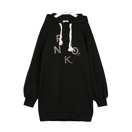 Платье тренч Pinko Up – это идеальный выбор для девочек 12 лет! Изготовленное из 100% хлопка, оно идеально подходит для теплой погоды. Черный цвет подчеркивает элегантность и модный стиль. На передней части платья виден яркий принт с надписью "FINKO", украшенный стразами, что делает его еще более привлекательным. Качество от итальянского бренда Pinko Up и удобная посадка делают это платье тренч отличным выбором для вашего ребенка!