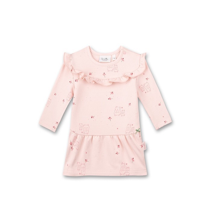 Платье для девочек Sanetta – это идеальный выбор для маленьких принцесс! Изготовленное из 95% хлопка и 5% эластана, оно украшено очаровательными медведями и цветочками на светло-розовом фоне. Нежная текстура ткани и удобная посадка создают комфорт и уют для вашего ребенка. На фотографиях видна аккуратная рюшевая отделка по краю и мягкая текстура ткани. Качество от бренда Sanetta и внимание к деталям делают эту одежду отличным выбором для вашего малыша!