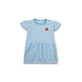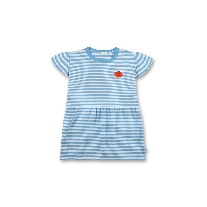 Платье для девочек Sanetta – это идеальный выбор для маленьких модниц! Изготовленное из 100% органического хлопка, оно украшено ярким принтом яблока на сине-белых полосках. Нежная ткань с приятным рисунком создает уют и радует глаз. На фотографии видна аккуратная окантовка по краю и мягкая текстура ткани. Качество от бренда Sanetta и внимание к деталям делают эту одежду отличным выбором для вашего ребенка!