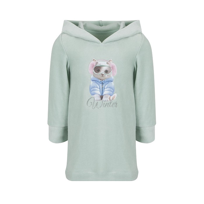 Серо-зеленое платье для девочек Lapin House с принтом кота