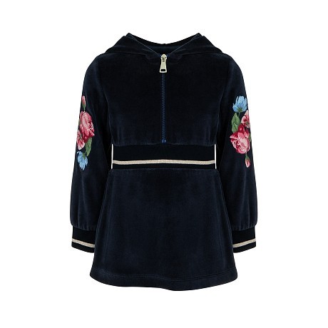 Трикотажное платье для девочек Lapin House – это идеальный выбор для вашего маленькой принцессы! Изготовленное из 77% хлопка и 23% полиэстера, оно украшено изысканными цветочными принтами на рукавах и пояске. Платье с воротником-стойкой обеспечивает удобство и стиль. На фотографиях видны аккуратные цветочные мотивы, золотистая строчка по краю рукавов и пояса, а также мягкая текстура ткани. Качество от бренда из Греции и внимание к деталям делают это платье отличным выбором для вашего ребенка!