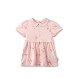 Трикотажное платье Sanetta – идеальный выбор для девочек! Изготовленное из 100% натурального хлопка, оно украшено очаровательными бабочками и цветочками на светло-розовом фоне. Классический воротничок и пышная юбка создают нежный и элегантный образ. На фотографиях видна аккуратная отделка края и мягкая текстура ткани. Качество от бренда из Германии и внимание к деталям делают эту модель отличным выбором для вашего ребенка!