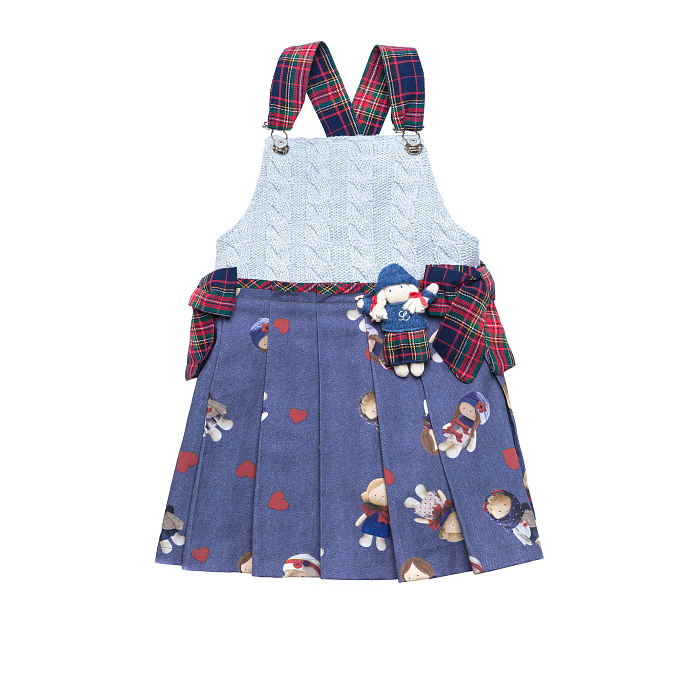 Сарафан Lapin House – это идеальный выбор для девочек! Изготовленный из 80% хлопка, 16% вискозы, 2% шерсти и 2% эластана, он украшен очаровательными куклами и сердечками на синем фоне. Нежная ткань с яркими принтами создает игривое и в то же время уютное настроение. На фотографиях видны аккуратные детали: красные и синие клетчатые бант, мягкая текстура ткани и удобная посадка. Качество от бренда из Греции и внимание к деталям делают этот сарафан отличным выбором для вашего ребенка!