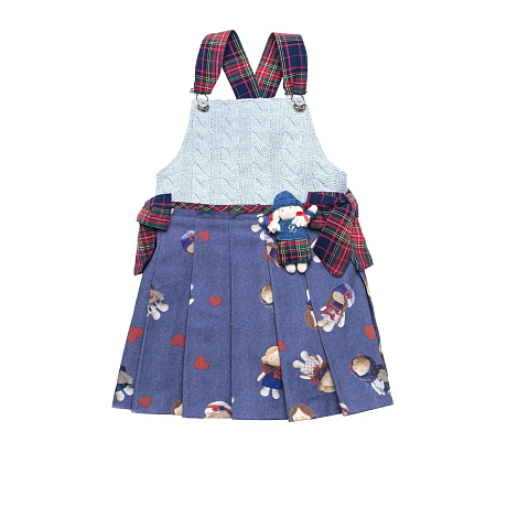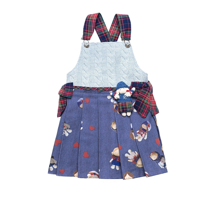 Сарафан Lapin House – это идеальный выбор для девочек! Изготовленный из 80% хлопка, 16% вискозы, 2% шерсти и 2% эластана, он украшен очаровательными куклами и сердечками на синем фоне. Нежная ткань с яркими принтами создает игривое и в то же время уютное настроение. На фотографиях видны аккуратные детали: красные и синие клетчатые бант, мягкая текстура ткани и удобная посадка. Качество от бренда из Греции и внимание к деталям делают этот сарафан отличным выбором для вашего ребенка!