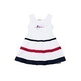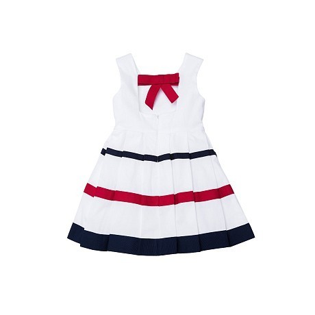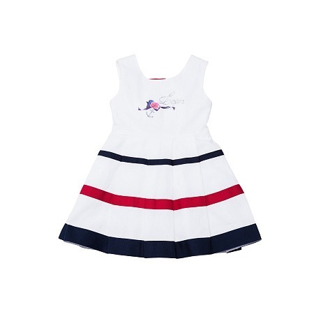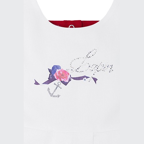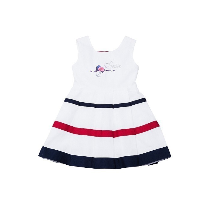 Сарафан Lapin House – это идеальный выбор для девочек! Изготовленный из 100% хлопка, он украшен очаровательным принтом цветов и надписью. Нежная белая основа с красными и синими полосами создает яркий и стильный образ. На фотографии видна аккуратная отделка по краю и мягкость ткани. Качество от бренда из Греции и внимание к деталям делают этот сарафан отличным выбором для вашего ребенка!