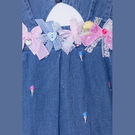 Сарафан Lapin House – это идеальный выбор для девочек! Изготовленный из 100% хлопка, он украшен очаровательными вышивками мороженого и цветными бантиками. Нежная джинсовая ткань с яркими мороженными и бантиками создает легкую и веселую атмосферу. На фотографии видны аккуратные цветные бантики по краю и мягкая текстура ткани. Качество от бренда из Греции и внимание к деталям делают этот сарафан отличным выбором для вашего ребенка!