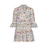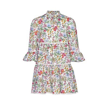 Туника Chobi – это идеальный выбор для маленьких модниц! Изготовленная из 100% хлопка, она украшена нежным цветочным принтом с разноцветными цветами на белом фоне. Туника с рукавами-фонариками и кружевной отделкой по краю создает романтичное и в то же время удобное настроение. На фотографии видна аккуратная кружевная окантовка по краю и мягкая текстура ткани. Качество от бренда из России и внимание к деталям делают эту тунику отличным выбором для вашего ребенка!
