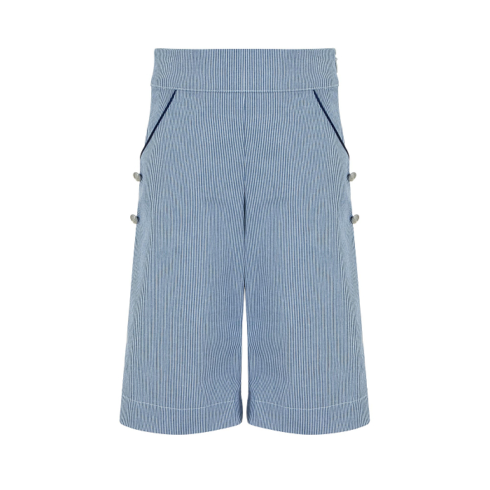Бриджи Lapin House – это идеальный выбор для девочек! Изготовленные из 100% хлопка, они оформлены стильными серо-голубыми полосками и пуговицами на боковых карманах. Нежная текстура ткани и удобная посадка делают эти бриджи комфортными и стильными. На фотографиях видны аккуратные пуговицы на карманах и четкие полоски по всей длине бриджей. Качество от бренда из Греции и внимание к деталям делают эту модель отличным выбором для вашего ребенка!