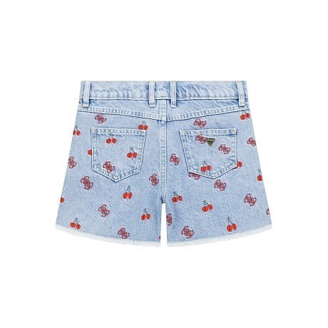 Шорты Guess для девочек – это идеальный выбор для стильных модниц! Изготовленные из 100% хлопка, они украшены очаровательными вышивками вишни и логотипом Guess. Нежная джинсовая ткань с яркими красными вишнями и белыми логотипами Guess создает модный и в то же время комфортный образ. На фотографиях видна аккуратная белая окантовка по краю и мягкая текстура ткани. Качество от американского бренда Guess и внимание к деталям делают эти шорты отличным выбором для вашего ребенка!