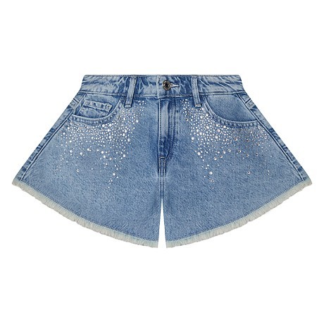 Джинсовые шорты Guess – это идеальный выбор для девочек 8-12 лет! Изготовленные из 100% хлопка, они украшены стильными серо-голубыми бриллиантами, которые добавляют шарма и изюминки. Шорты с удобной посадкой и эластичной резинкой на талии идеально сидят и комфортно носятся. На фотографиях видна аккуратная рваная текстура ткани, бриллианты на передних карманах и логотип Guess на задней части. Качество от бренда из США и внимание к деталям делают эти шорты отличным выбором для вашего ребенка!
