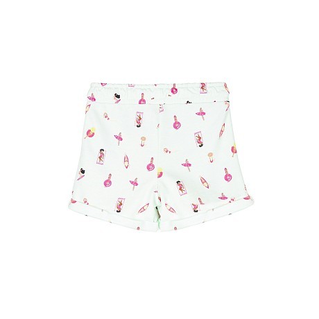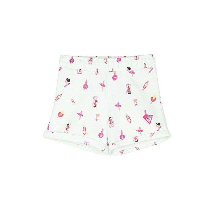 Шорты для девочек Guess – это идеальный выбор для активных девочек! Изготовленные из 100% хлопка, они украшены очаровательным принтом с изображениями девушек на пляже, купальниках и досках для серфинга на светло-серо-зеленом фоне. Нежный цвет и стильный дизайн делают эти шорты не только удобными, но и модными. На фотографиях видна эластичная резинка по талии и мягкая текстура ткани. Качество от бренда США и внимание к деталям делают эту модель отличным выбором для вашего ребенка!