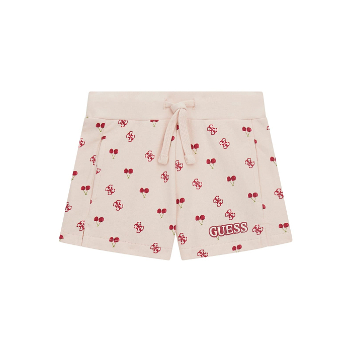 Шорты для девочек Guess бледно-розового цвета с принтом Guess – это идеальный выбор для маленьких модниц! Изготовленные из 100% хлопка, они обеспечивают комфорт и мягкость для нежной кожи. Шорты украшены мелкими красными символами Guess, что делает их стильными и оригинальными. На фотографиях видна удобная посадка, мягкая ткань и аккуратная отделка. Качество от бренда Guess и внимание к деталям делают эти шорты отличным выбором для вашего ребенка!