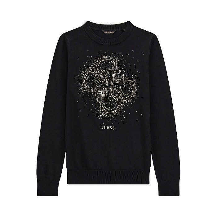 Черный джемпер Guess с вышивкой для девочек 12 лет