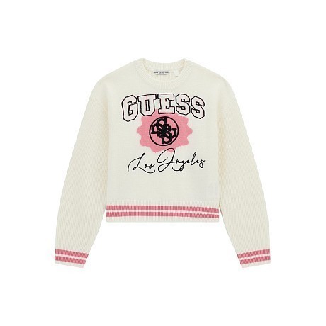 Джемпер Guess – это идеальный выбор для девочек от 7 до 14 лет! Изготовленный из 70% акрила и 30% шерсти, он украшен ярким принтом Los Angeles и логотипом Guess. Белый цвет с розовыми полосками по рукавам и воротнику делает эту модель стильной и модной. На фотографиях видна аккуратная вышивка и мягкая текстура ткани. Джемпер Guess – отличный выбор для вашего ребенка!