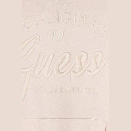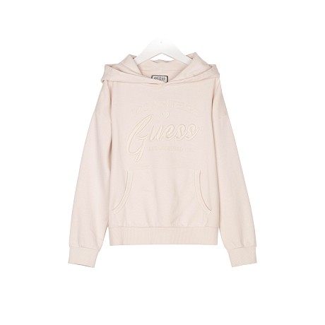 Молочная толстовка Guess – идеальный выбор для девочек 8-12 лет! Изготовленная из 100% хлопка, она обеспечивает комфорт и тепло. Толстовка украшена вышитым логотипом Guess и надписью "Los Angeles Established 1981" на передней части. Модель с капюшоном и двумя карманами по бокам. На фотографиях видна мягкая текстура ткани и аккуратная вышивка логотипа. Качество от американского бренда Guess и внимание к деталям делают эту толстовку отличным выбором для вашего ребенка!