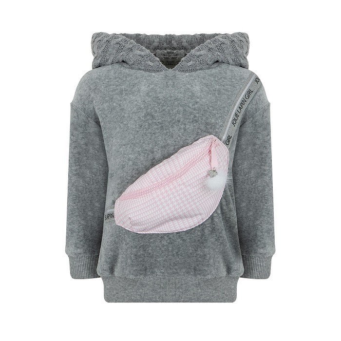 Джемпер (толстовка) для девочек Lapin House серого цвета с розовой сумкой