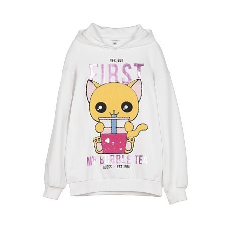 Толстовка для девочек Guess с принтом кота и надписью My Bubble Tea