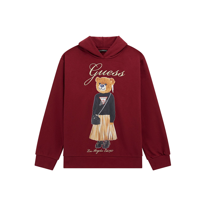 Толстовка Guess – это идеальный выбор для маленьких модниц! Изготовленная из 100% хлопка, она украшена милым принтом медведя с надписью "Guess" и аксессуарами. Тонкая белая основа с яркими элементами создает стильное и комфортное сочетание. На фотографиях видна аккуратная окантовка по краю и мягкая текстура ткани. Качество от американского бренда Guess делает эту толстовку отличным выбором для вашего ребенка!