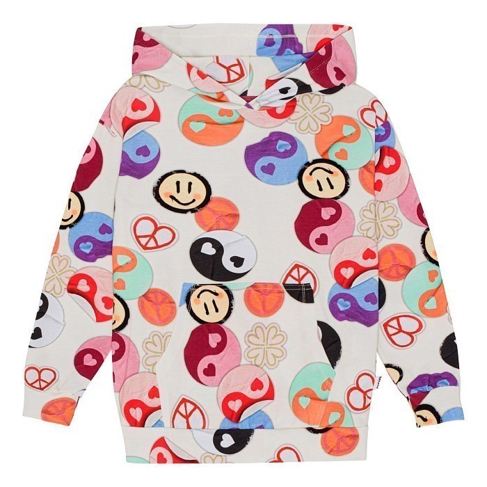 Толстовка Molo – это идеальный выбор для девочек! Изготовленная из 95% хлопка и 5% эластана, она украшена очаровательными принтами лиц и символов на светло-бежевом фоне. Мягкая и теплая ткань создает комфорт и уют для вашего ребенка. На фотографиях видны милые лица, символы мира и любви, а также цветные контрасты, которые делают эту толстовку яркой и стильной. Качество от бренда из Дании и внимание к деталям делают эту толстовку отличным выбором для вашего ребенка!