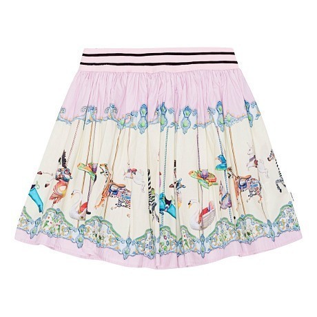 Юбка Molo – это идеальный выбор для маленьких модниц! Изготовленная из 100% натурального хлопка, она украшена очаровательным принтом карусели с животными и цветами на белом фоне. Яркие и разнообразные животные, такие как лошади, зебры, птицы и другие, создают веселое и яркое настроение. На фотографиях видна аккуратная розовая окантовка по краю и мягкая текстура ткани. Качество от бренда из Дании и внимание к деталям делают эту юбку отличным выбором для вашего ребенка!
