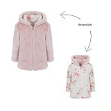 Бледно-розовое, белое с цветочным принтом двустороннее пальто Lapin House для девочек (12-18 мес)