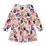 Платье для девочек Molo светло-бежевого цвета с принтом лиц и сердечек