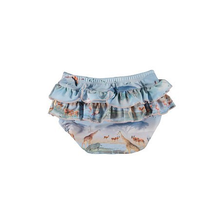 Трусы купальные для девочки Molo – это идеальный выбор для летних купаний! Изготовленные из 85% переработанного полиэстера и 15% эластана, они дополнены подкладкой из 100% нейлона. Принт с изображением диких животных, таких как жирафы, зебры и фламинго, создает неповторимую атмосферу приключений. Нежная ткань с рюшами по краю обеспечивает комфорт и удобство. Качество от бренда из Дании и внимание к деталям делают эти трусы купальные отличным выбором для вашего ребенка!