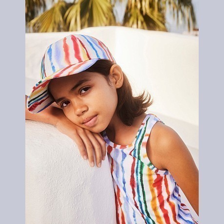 Бейсболка Molo – это идеальный выбор для девочек! Изготовленная из 100% полиэстера, она украшена яркими полосами в разных цветах. На фотографиях видна аккуратная белая окантовка по краю и мягкая текстура ткани. Качество от бренда из Дании и внимание к деталям делают эту бейсболку отличным выбором для вашего ребенка!