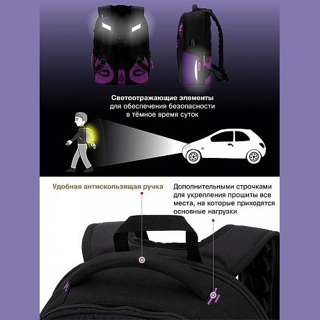Рюкзак+мешок для обуви+сумка-пенал для девочки GROOC черный