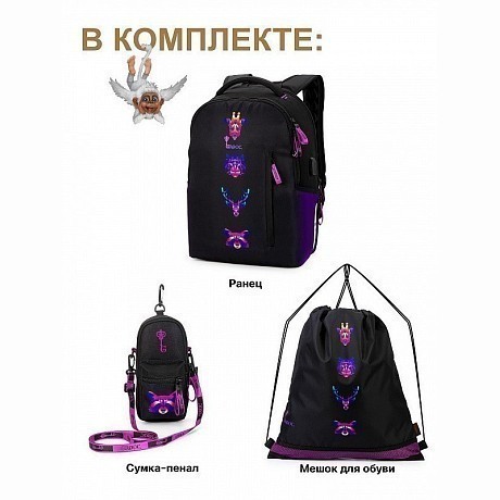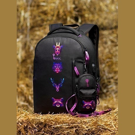 Рюкзак+мешок для обуви+сумка-пенал GROOC – это идеальный вариант для девочек всех возрастов! Изготовлен из прочного 100% полиэстера, он сочетает в себе функциональность и стиль. Чёрный цвет подходит к любому наряду, а яркие принты животных добавляют рюкзаку динамичности и веселья. Рюкзак удобно носить, а мешок для обуви и сумка-пенал обеспечивают дополнительное удобство. Быстрая доставка СДЭК по всей России.