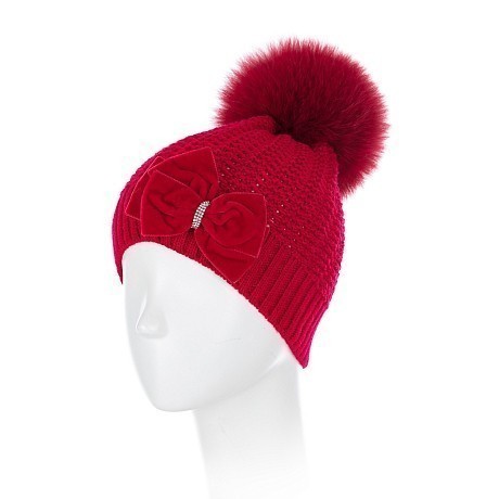 Красная шапка для девочек Joli Bebe с меховым помпоном и цветком